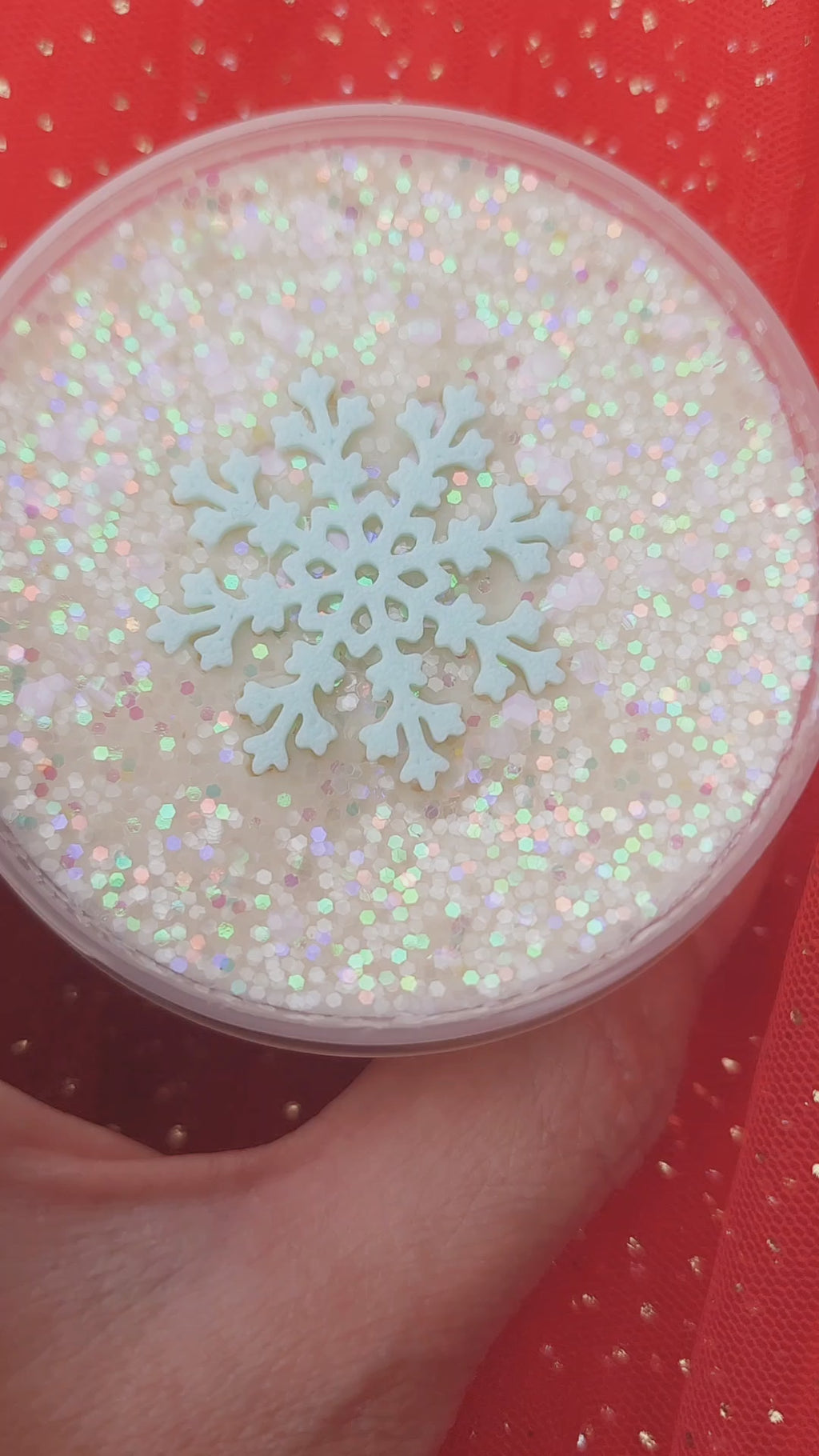 - 1(160g) jar of our Snowman Luxe Playdough - in white, sprinkled with eco-friendly glitter on top. Decorated with a snowflake accessory, as pictured.