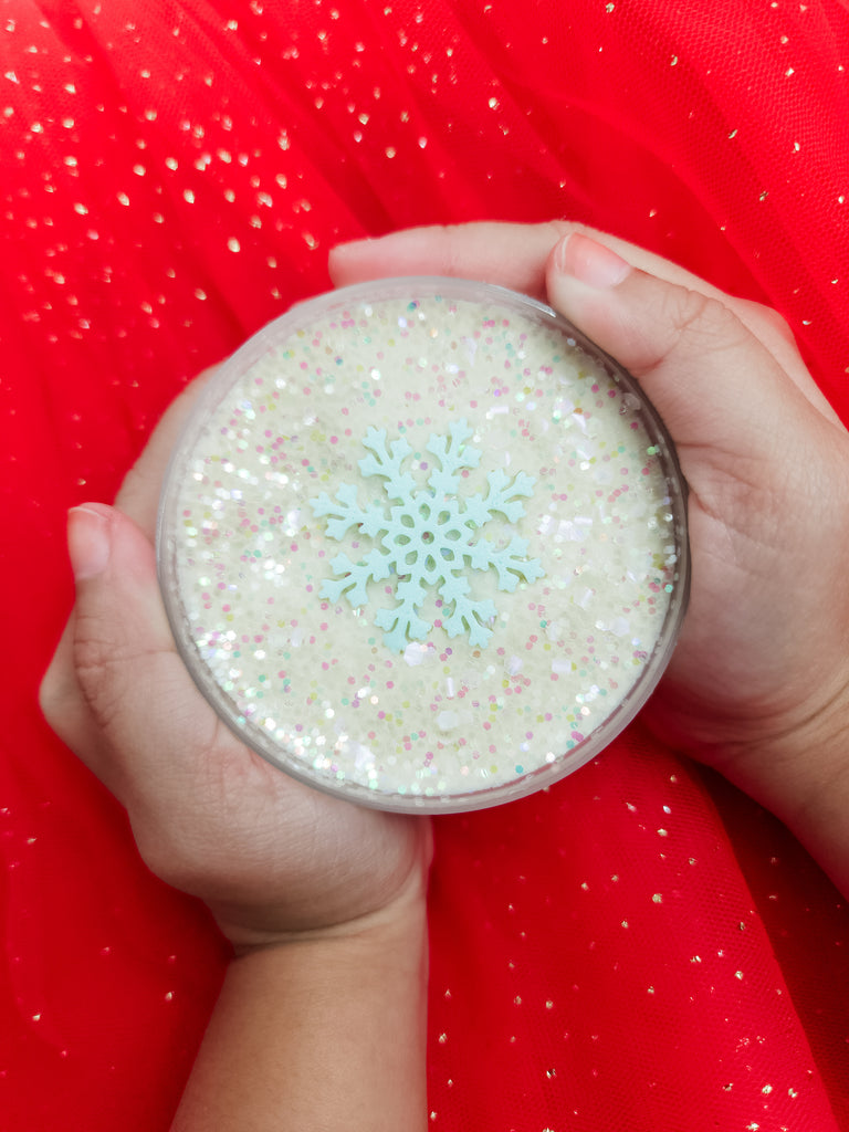 Celebrate the magic of a snowy winter Christmas with our Snowman Luxe Playdough—a handcrafted sensory jar filled with frosty softness and snowflake sparkle.