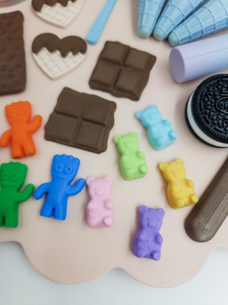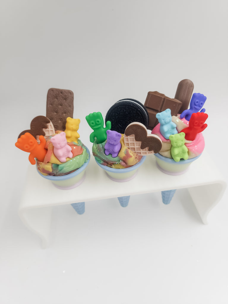 This handcrafted Ice Cream Parlour Playdough Kit is bursting with dessert-themed delights designed to spark creativity, sensory joy, and imaginative storytelling. From luxe playdough to 3D-printed accessories, every detail invites kids and grown-ups alike to swirl, scoop, and decorate their dream desserts.