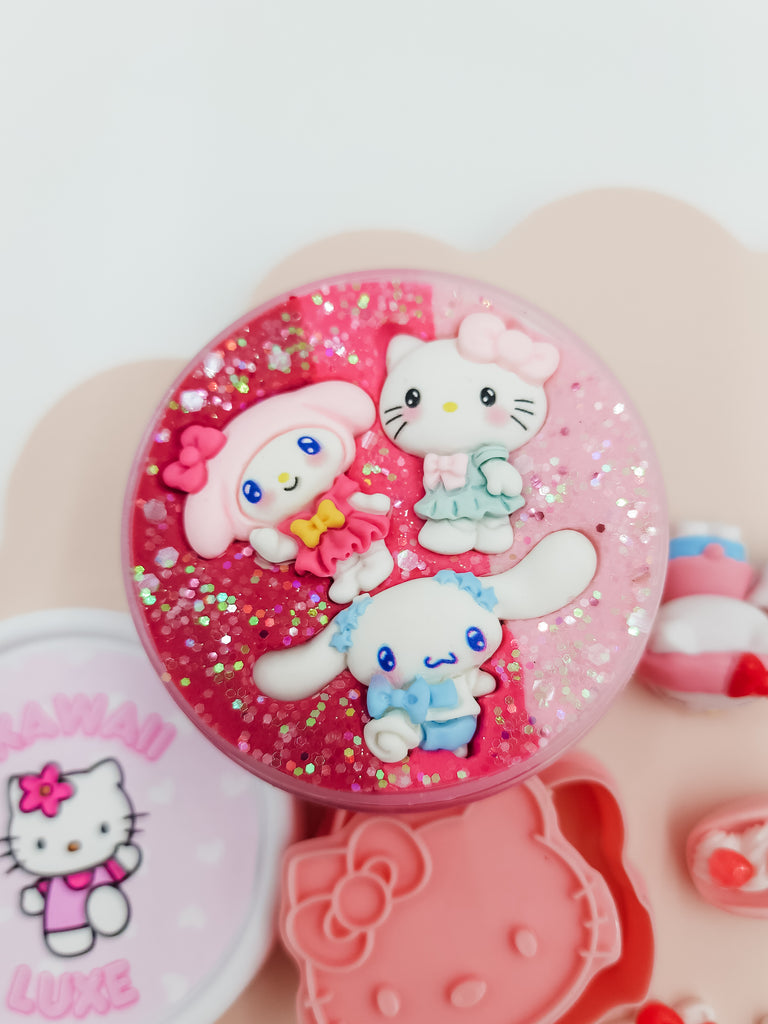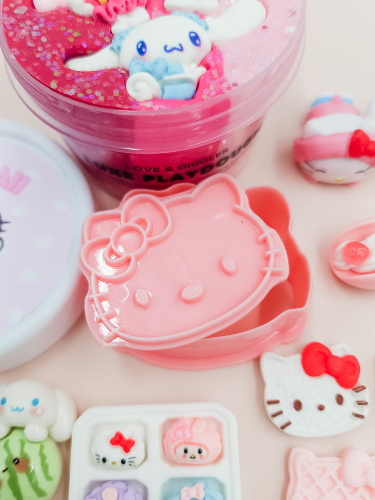 • 1 (160g) jars of our Kawaii Luxe Playdough in shades of red, pink and white with eco-friendly glitter and accessories on top, as pictured.